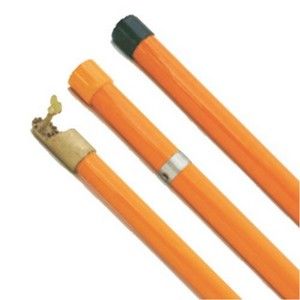 Vara de Manobra, utilizada nos circuitos elétricos com grande facilidade de manobra em abertura e fechamento de chaves, na operação de aterramento temporário e afins; em linhas aéreas de transmissão, subestação, distribuição, usinas e indústrias. Construída em resina epóxi reforçada com fibra de vidro, com alta resistência mecânica e elétrica, protegida internamente com núcleo poliuretano. Ferramenta manual, confeccionada de material isolante, de comprimento suficientemente longo para que, através de um força aplicada numa das extremidades permite a operação à distância de equipamento. Provida de: Cabeçote em liga de bronze alumínio com encaixe universal, parafuso tipo borboleta em aço com tratamento anticorrosivo, aneis em latão de reforça dos furos de fixação, cabeçote para manobra 1162, ponteira de borracha, tensão máxima 300kv.